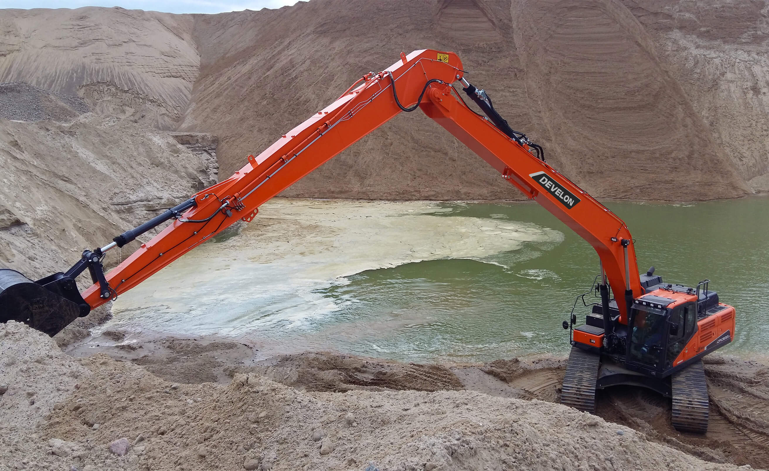 Nové rýpadlá so super dlhým dosahom poskytujú vynikajúci výkon vďaka pokročilým hydraulickým systémom, pohodlným priestranným kabínam, odolnej konštrukcii a výkonným motorom s nízkou spotrebou paliva.