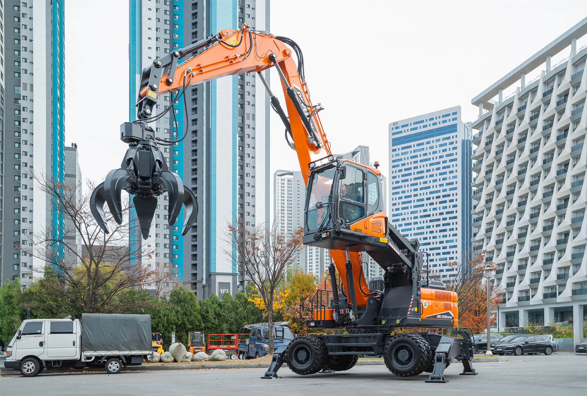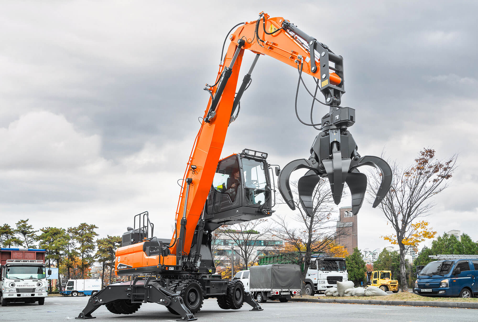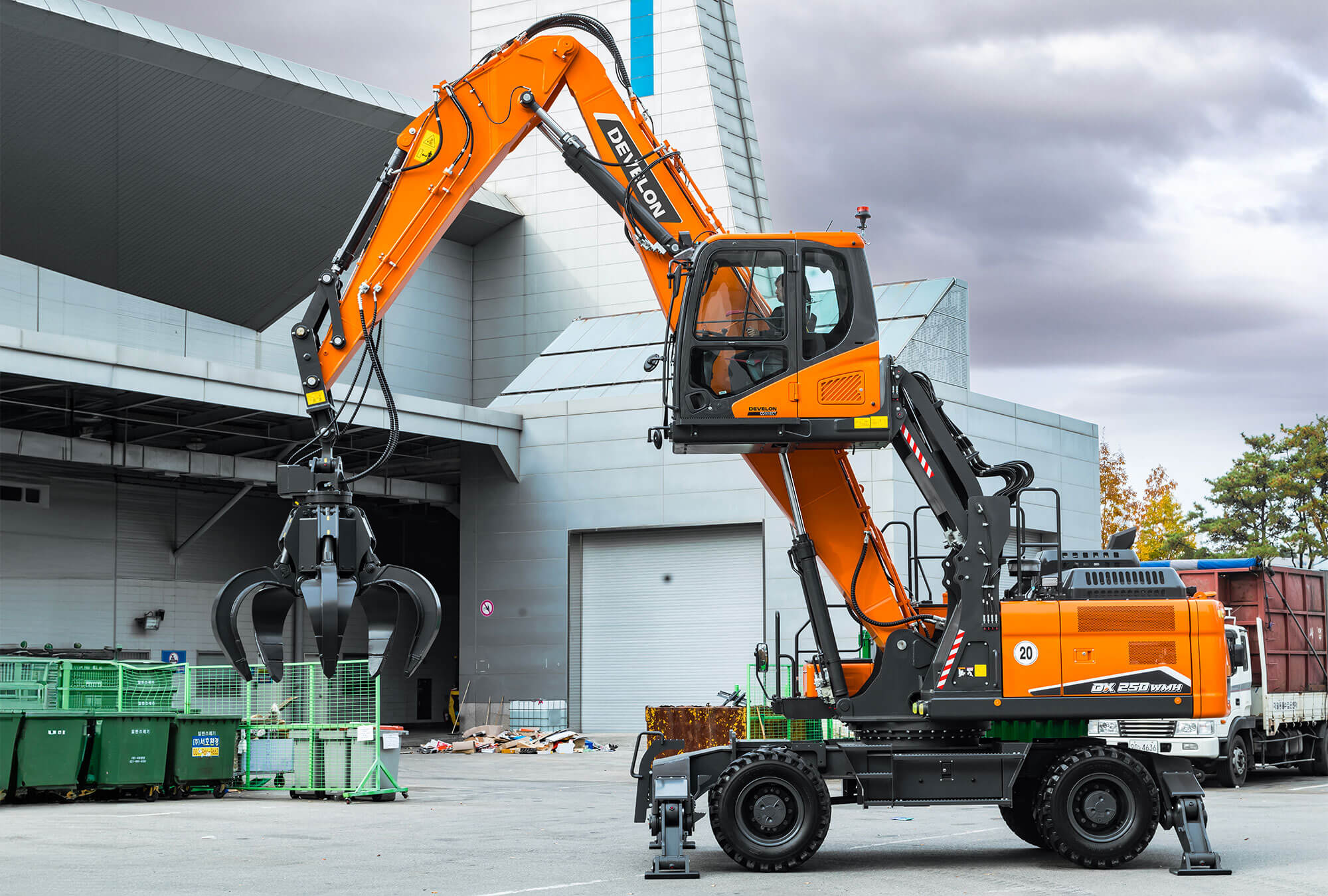DX250WMH-7 je 25-tonový manipulátor s materiálom v súlade so Stage V na použitie v odvetví pevného odpadu, recyklácie, demolácií a lesníctva.